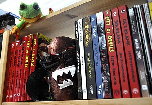 Justin and his family reside in Los Angeles with extensive book, comic, and DVD collections.